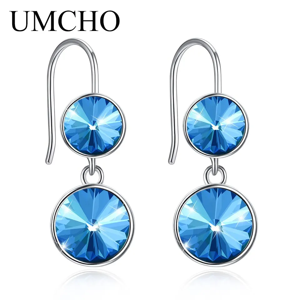 Женские серьги-капельки UMCHO, однотонные серебряные серьги из стерлингового серебра 925 пробы с кристаллами в простом стиле, ювелирные украшения, Прямая поставка