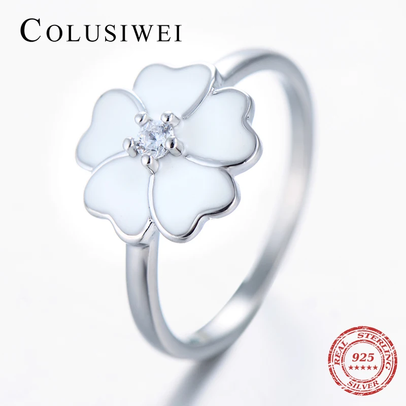 Продажи белой эмалью ювелирные изделия циркония Примроуз стекируемые женственный цветок кольца 100% реальные 925 пробы серебряный перстень
