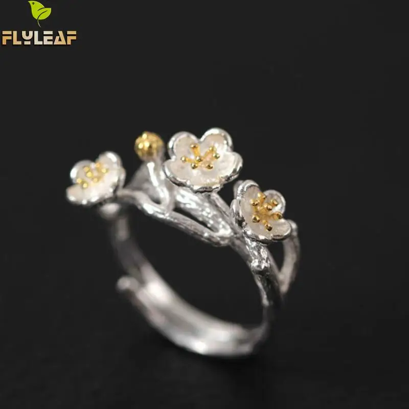 Flyleaf, 100% Стерлинговое Серебро 925 пробы, открытые кольца с цветком сливы для женщин, женские винтажные ювелирные изделия в китайском стиле
