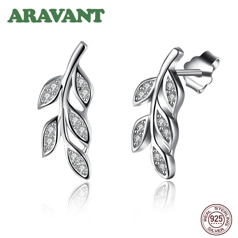 Новая мода 925 стерлингового серебра ослепительный фианит листья Дерево жизни серьги гвоздики для женщин ювелирные изделия из стерлингового серебра