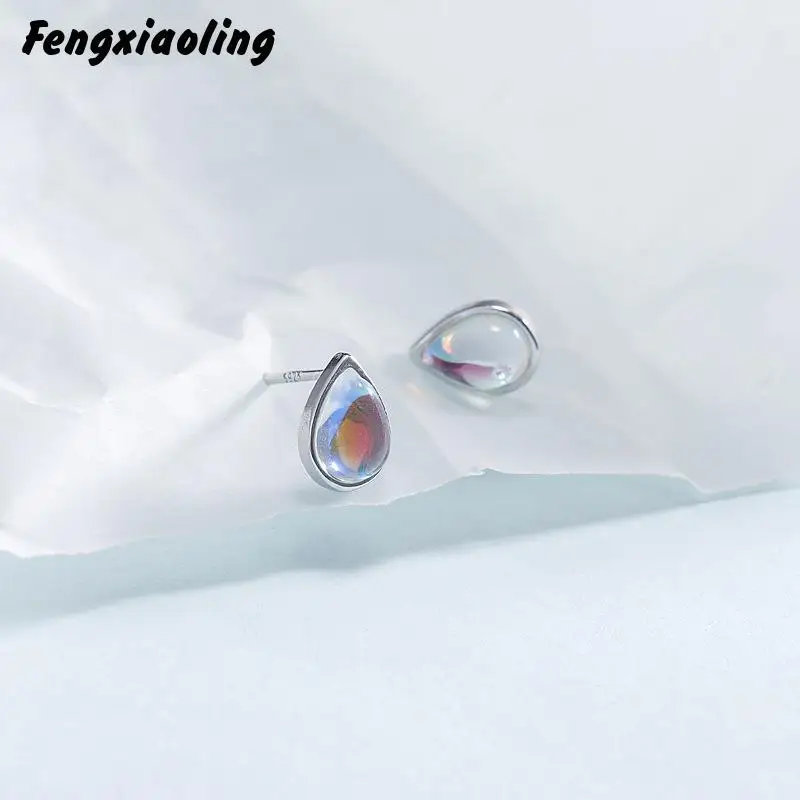 Женские серьги-пусеты Fengxiaoling, серьги-Пусеты Из 100% 925 пробы серебра с каплями воды, из натурального камня, модные вечерние украшения