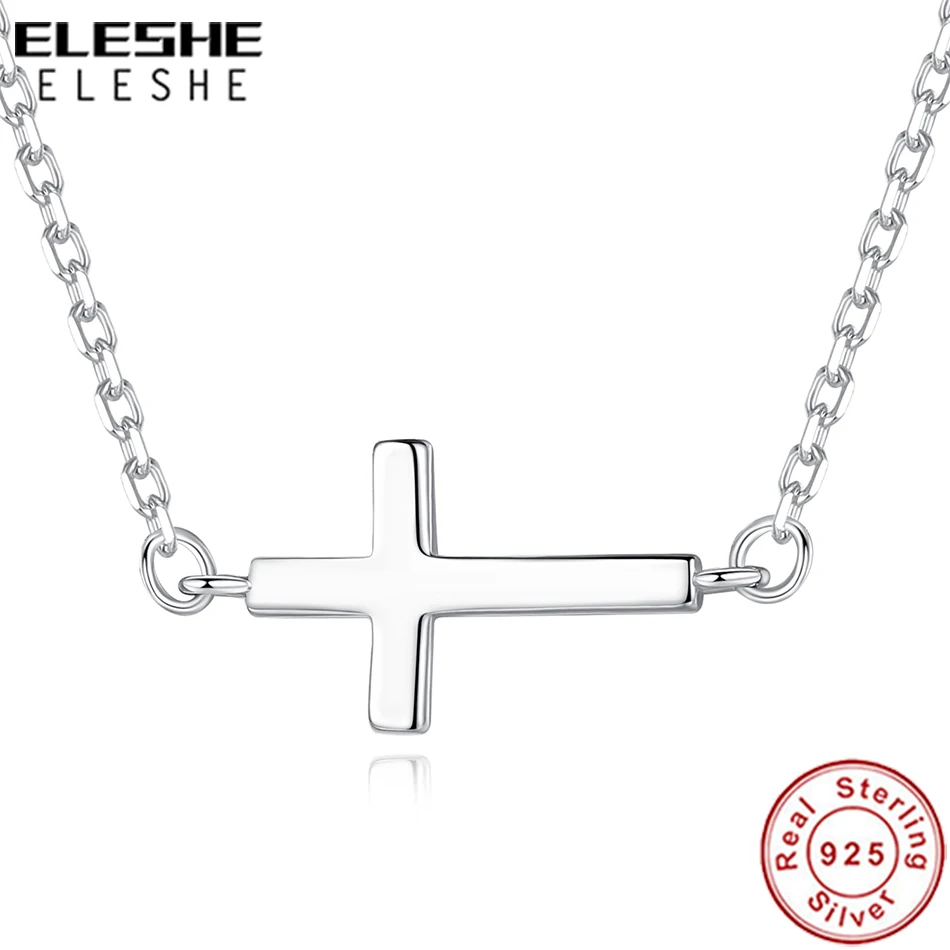 ELESHE, простой классический крест, подвеска, ожерелье, 925 пробы, серебро, регулируемая цепочка, ожерелья для женщин, массивные подлинные ювелирные изделия