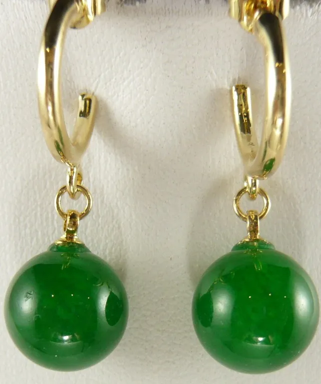 Оптовая продажа очаровательные 12 мм зеленый натуральный нефритовый шарик 18kgp серьги