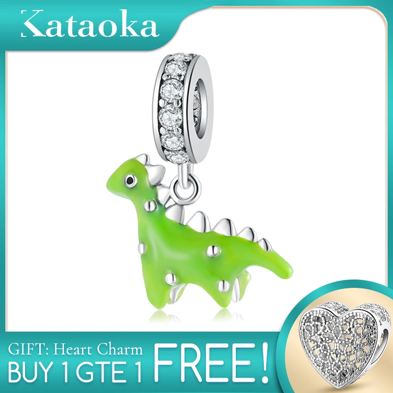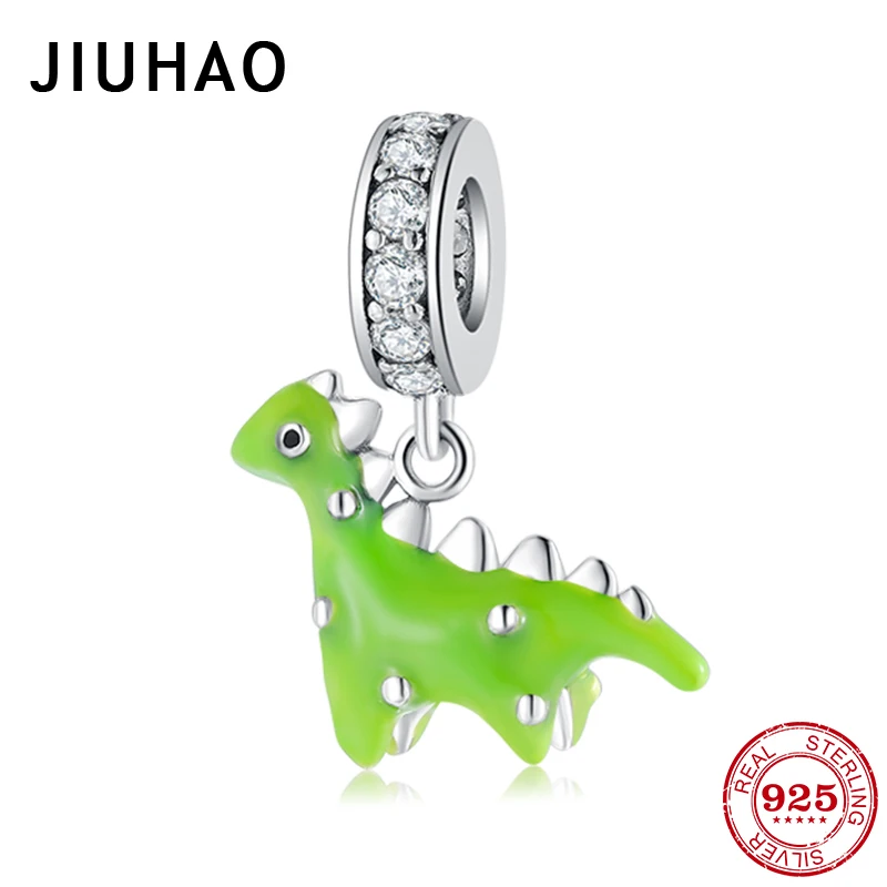 Горячая 925 пробы серебряные милые динозавры зеленые эмалированные амулеты для изготовления ювелирных изделий Подвески подходят к оригинал...