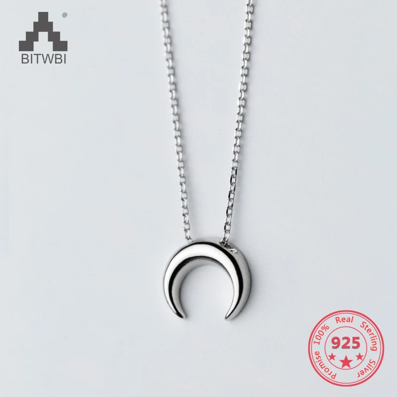 Лидер продаж 100% 925 пробы серебро в Корейском стиле Простые Мода Подвеска полумесяц колье до ключиц Цепочки и ожерелья украшения для Для женщ...