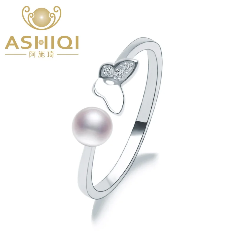 ASHIQI 925 пробы Серебряное кольцо с бабочкой высокое качество 5-6 мм естественный пресноводный жемчуг открыть палец ясно циркон для Для женщин ю...