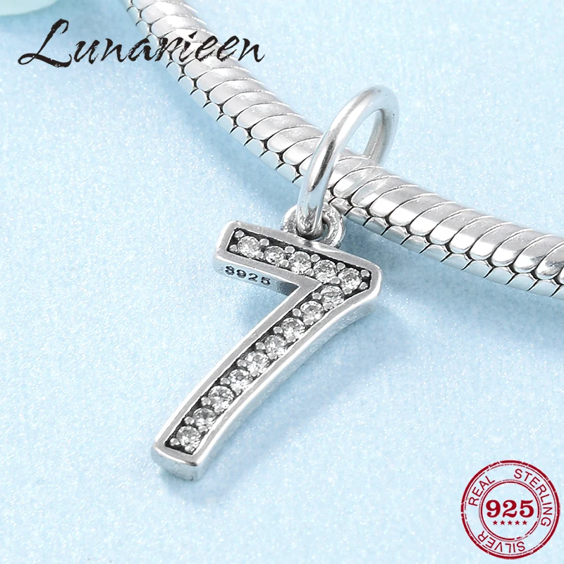 Количество 7 циркониевые амулеты бусины Аутентичные стерлингового серебра 925 подходят оригинальные браслеты Pandora Шарм серебряные ювелирны...