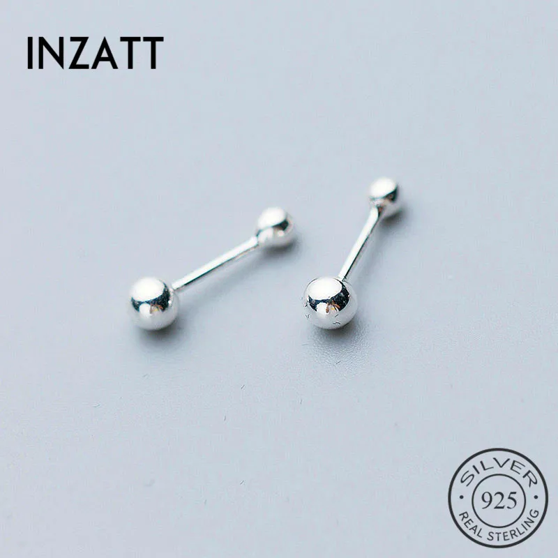 INZATT, настоящее 925 пробы, серебряные, минималистичные, круглые, с бусинами, серьги-гвоздики для модных женщин, вечерние, трендовые, ювелирные и...