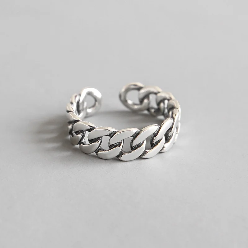 В стиле панк Рок Аутентичные S925 стерлингового серебра ювелирные украшения цепи кольца ручной работы в винтажном стиле кольцо J494