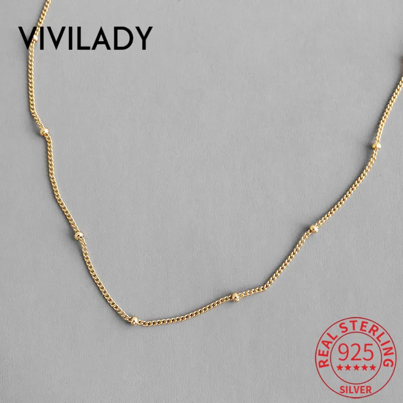 VIVIADY, 925 пробы, серебряная цепочка, круглые бусины, женское колье, ожерелье, минималистичный стиль, панк, ключицы, Женские Ювелирные изделия д...