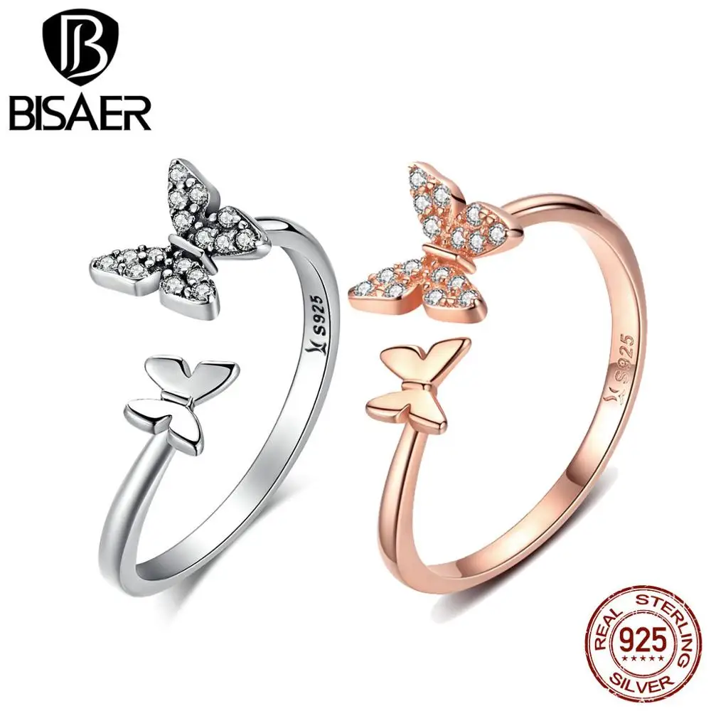 BISAER Лидер продаж 925 пробы серебро CZ Танцы бабочка открытые, кольца на палец для Для женщин моды стерлингового Серебряные ювелирные изделия подарок