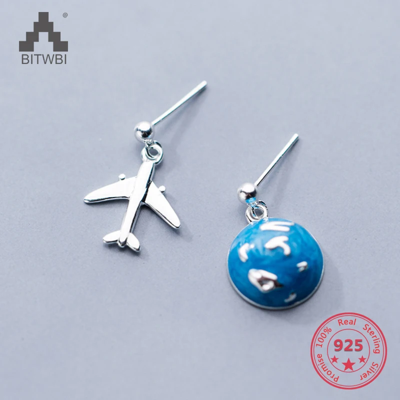 Чистый 925 пробы серебряные серьги новый дизайн творческий лаконичный асимметрия земля Самолет Серьги гвоздики ювелирные украшения