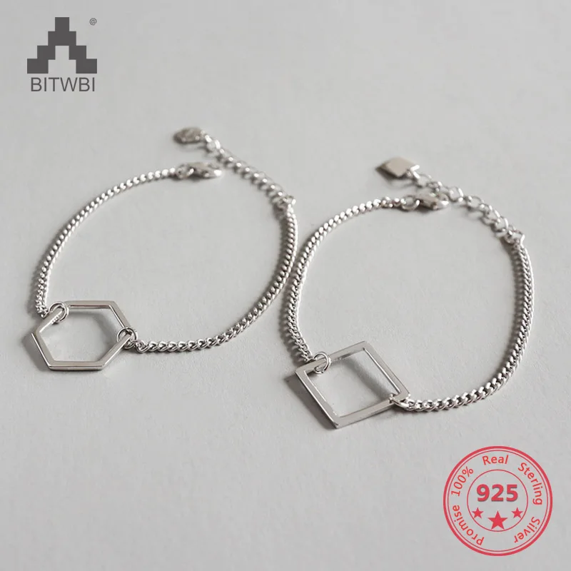 Простой 925 Браслеты стерлингового серебра для Для женщин геометрический шестигранной площади Браслеты подарок ювелирные изделия