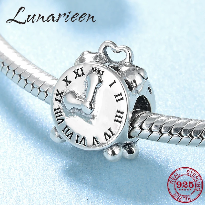 Горячая Распродажа 925 пробы серебро Прекрасный часы-подвеска с будильником, драгоценные бусины, подходят к оригинальным браслет подвес Пан...
