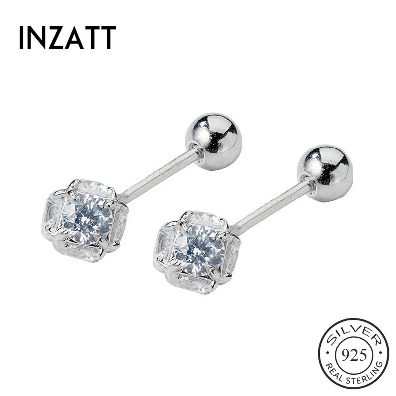 INZATT, настоящее 925 пробы, серебряные, минималистичные, циркониевые серьги-гвоздики, модные, женские, вечерние, милые, ювелирные украшения, акс...