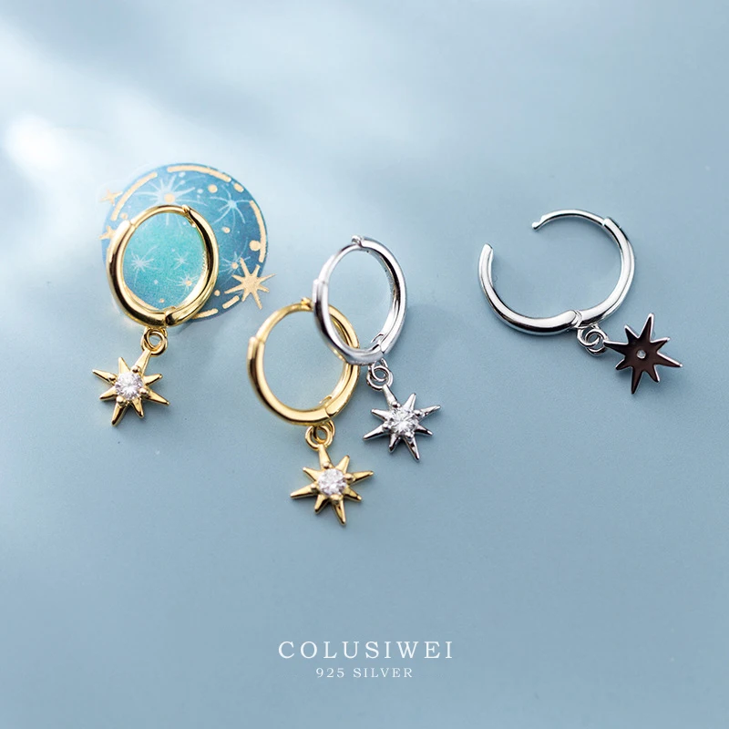 Женские серьги-кольца COLUSIWEI, роскошные серьги из стерлингового серебра 925 пробы со звездами, свадебные ювелирные изделия с фианитами, подарки