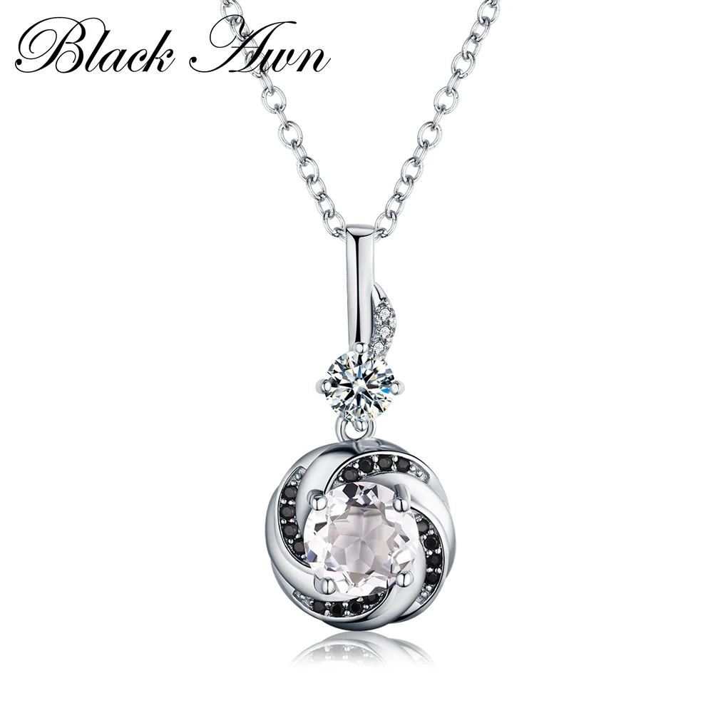 Черное ожерелье из серебра AWN, подлинное 100% Серебро 925 пробы, ожерелье с горкой, Женские Ювелирные изделия, классические круглые ожерелья и подвески P113