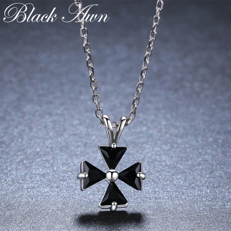 Черный ость Лидер продаж 925 пробы серебряный кулон в виде цветка Цепочки и ожерелья Для Женщин стерлингов Серебряные ювелирные изделия K036