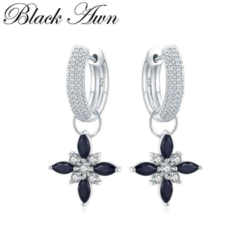 Женские классические серьги-кольца Awn, из серебра 925 пробы с черным шпинелем, для вечеринок, I078