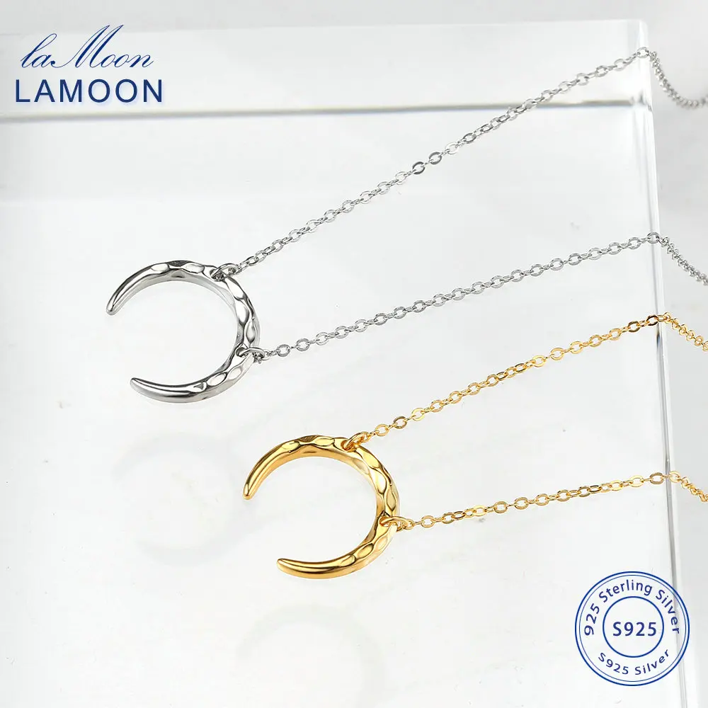 925 пробы, серебряное ожерелье для женщин, колье, Подвеска полумесяц, желтое золото, модное ювелирное изделие, LMNL018
