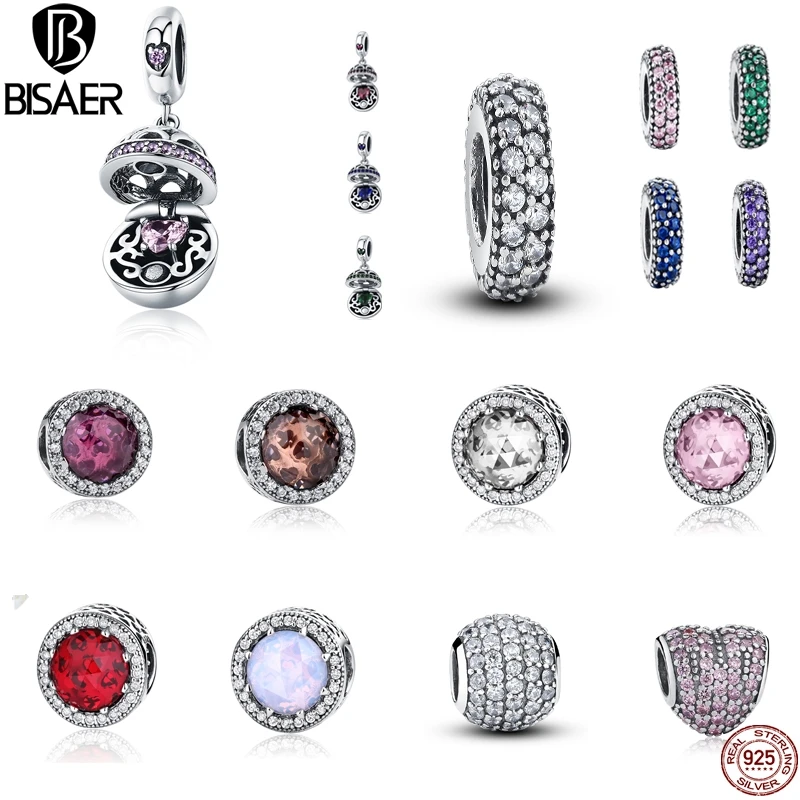 Женский браслет-подвеска BISAER, подвеска из стерлингового серебра 925 пробы с розовым фианитом, ювелирное изделие HSC689
