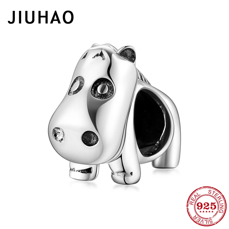 925 пробы серебряный милый Нежный маленький Бегемот Животное Бусины Подходят для женщин Шарм Pandora Браслеты ювелирных изделий