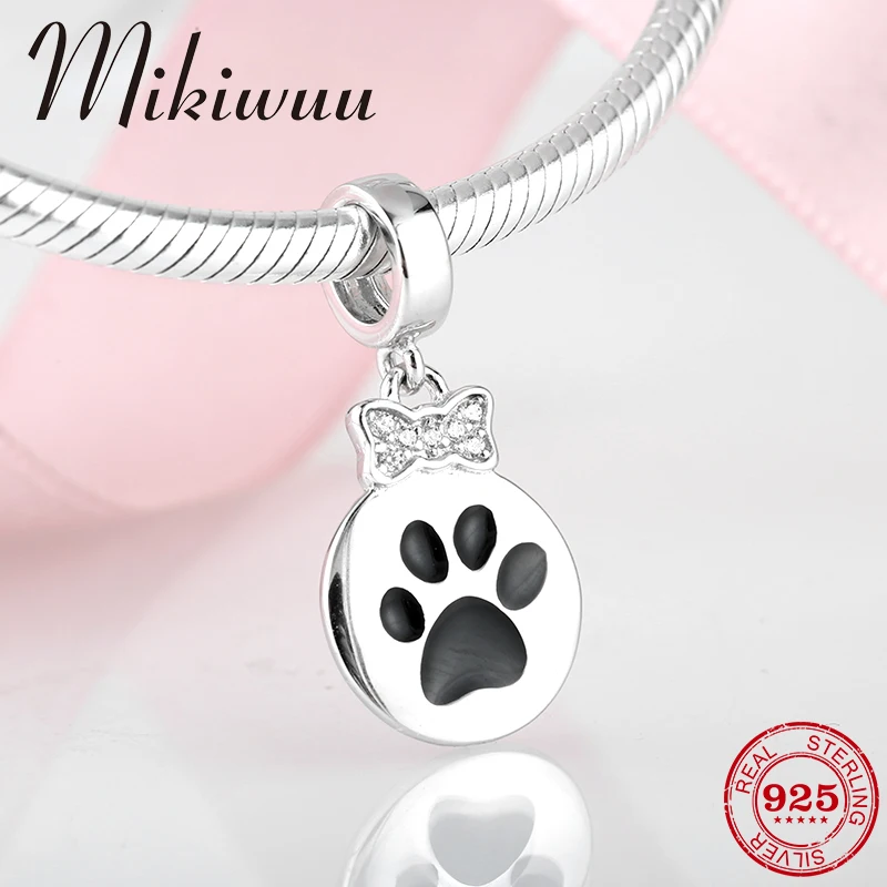 Новый 925 пробы серебро лук CZ Милая кошачья лапа подвеска «слепок» Ювелирных изделий Fit оригинальный браслет подвес Пандора