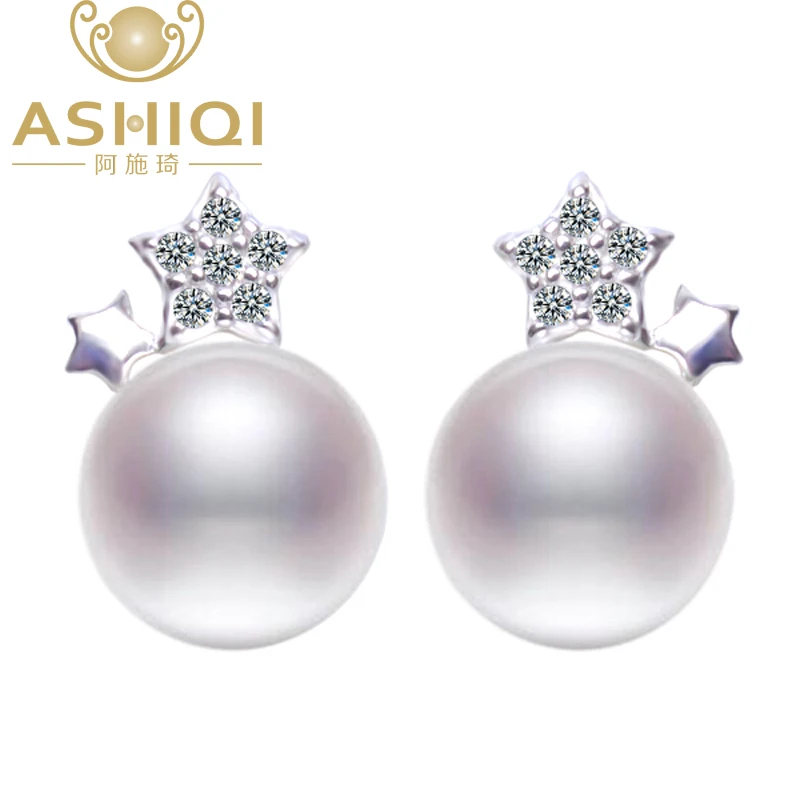 ASHIQI 925 пробы серебряная звезда серьги натуральный пресноводный жемчуг серьги гвоздики для женщин ювелирные украшения