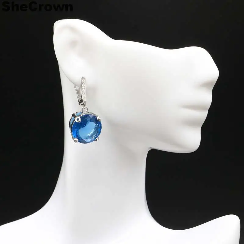 32x15 мм элегантная круглая форма насыщенный Синий Аквамарин Белый CZ женский подарок серебряные серьги