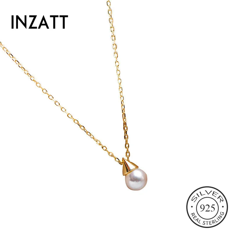 INZATT, настоящее 925 пробы, Серебряное минималистичное жемчужное ожерелье с подвеской для модных женщин, модное ювелирное изделие, классически...