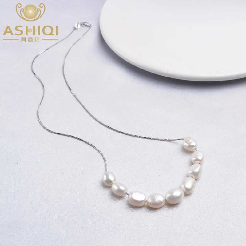 ASHIQI Настоящее 925 пробы Серебряное ожерелье цепь 6-7 мм Натуральная жемчужная подвеска в стиле барокко ювелирные изделия для женщин подарок