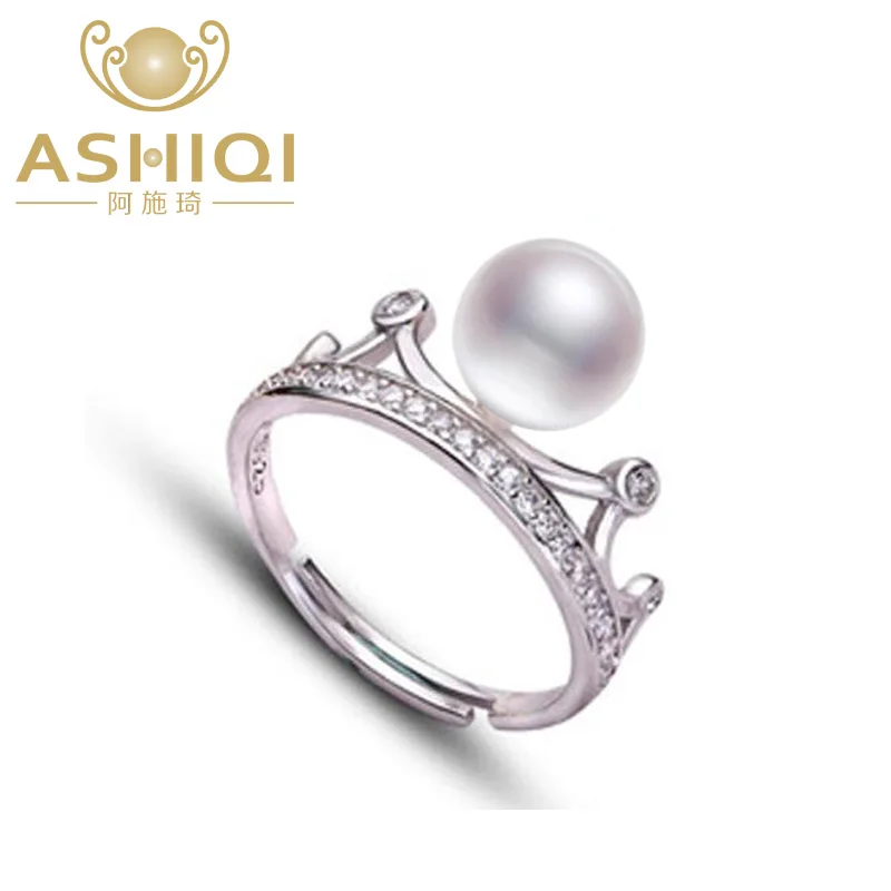 ASHIQI Высокое качество Натуральная 925 пробы Серебряная корона кольцо натуральный пресноводный жемчуг кольцо для женщин изменение