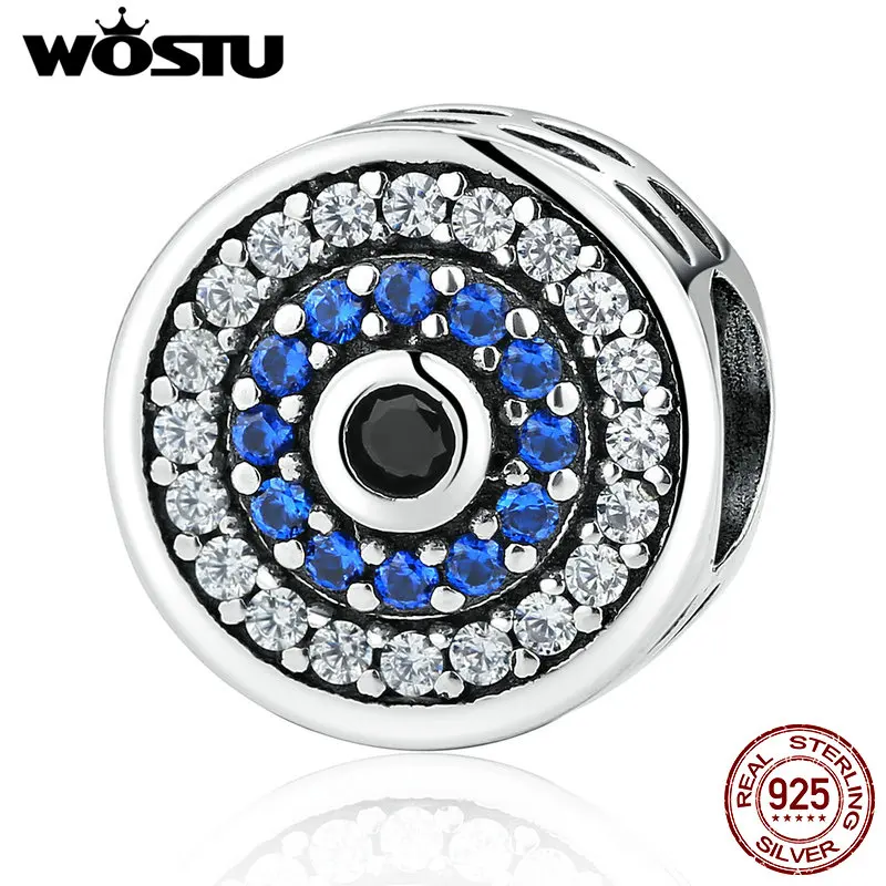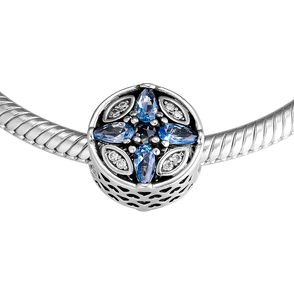 Оптовая Продажа 925 стерлингового серебра Samsara Шарм бисера с синим CZ Fit оригинальный WOST браслет винтажные Аутентичные ювелирные изделия BKC092