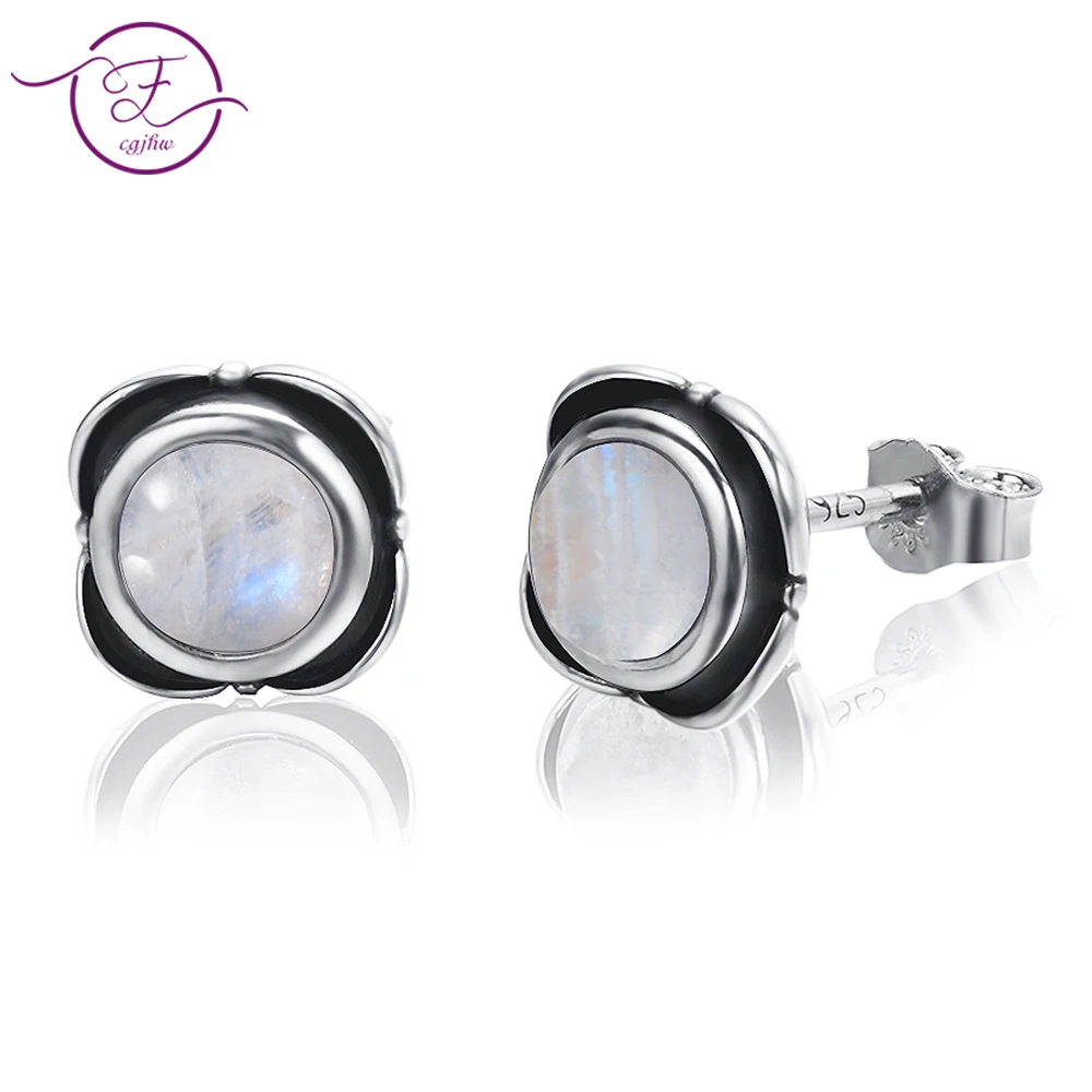 Элегантный круглый натуральный лунный камень серьги гвоздики 925 стерлингового серебра ювелирные изделия для женщин для свадьбы, помолвки ю...