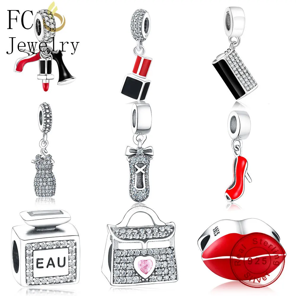 FC ювелирное изделие, оригинальный браслет Pandora, 925 пробы, Серебряное платье, губная помада, на высоком каблуке, сумка, духи, чашка, сделай сам