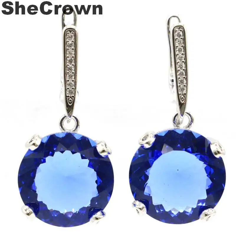 32x15 мм SheCrown создан круглой формы насыщенный синий фиолетовый танзанит женские вечерние серебряные серьги