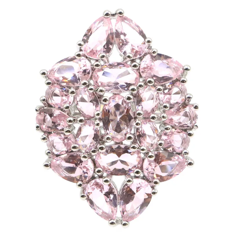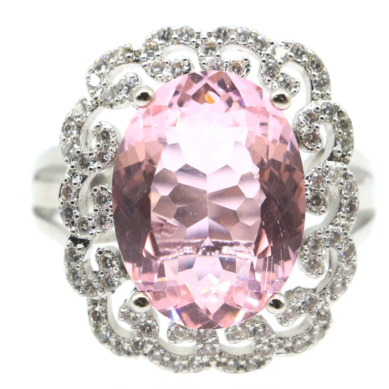 22x19 мм ослепительно созданный розовый кунцит Белый CZ подарок для дам серебряные обручальные кольца