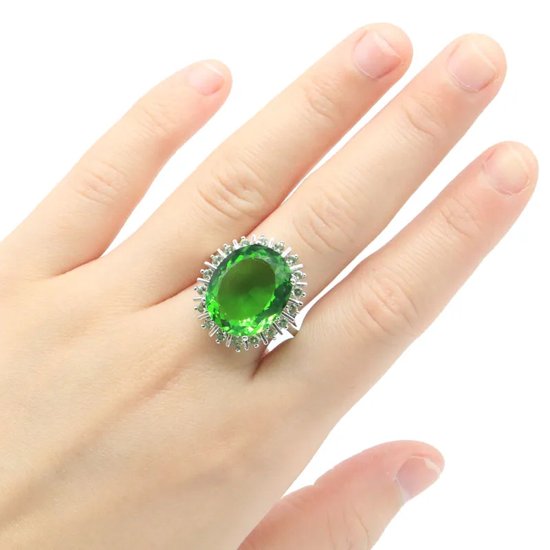 15x13 мм, хит продаж 2019, в форме капли, создан зеленый аметист, натуральный CZ ювелирное изделие, женские серебряные кольца