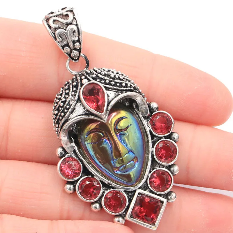 55x30 мм потрясающий 16,4 г лесной богини лицо цветущего холма кварц зеленый изумруд SheCrown женский серебряный кулон