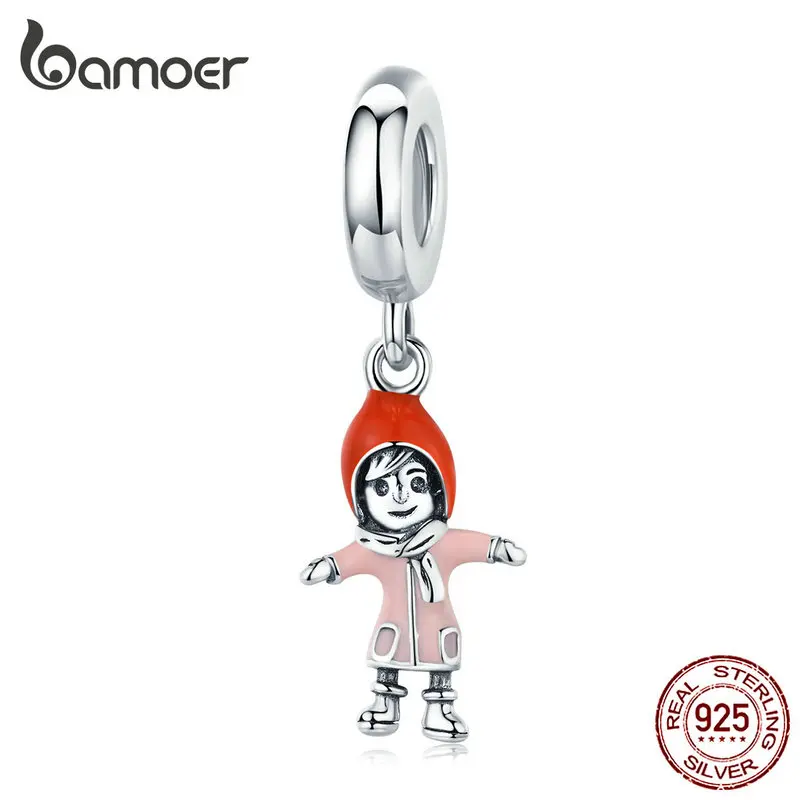 Bamoer, оригинал, 925 пробы, серебряный, обнимающий, для девушек, подвеска, шарм, для женщин, браслет, эмаль, на Рождество, коллекция SCC1353