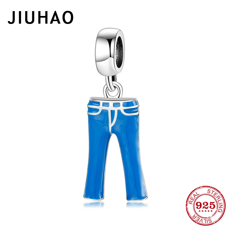 Новый 925 пробы серебряный милый голубой эмаль джинсы подвески талисманы Fit Pandora бусины браслет для женщин хорошее ювелирное изделие