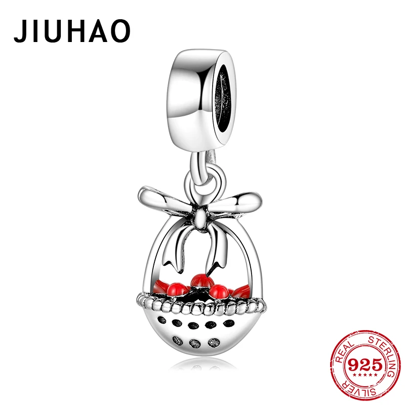 Горячая Распродажа, 925 пробы, серебряные, вишневые, фруктовые корзины, очаровательные бусины, подходят к оригинальному браслету Pandora для жен...