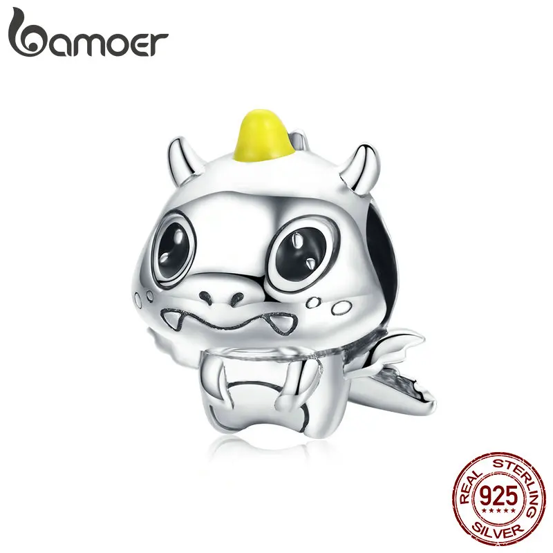 BAMOER 100% Серебро 925 пробы Симпатичные Единорог Дракон динозавр Бусины fit для женщин Браслеты и ожерелья для мужчин серебряные ювелирные издел...
