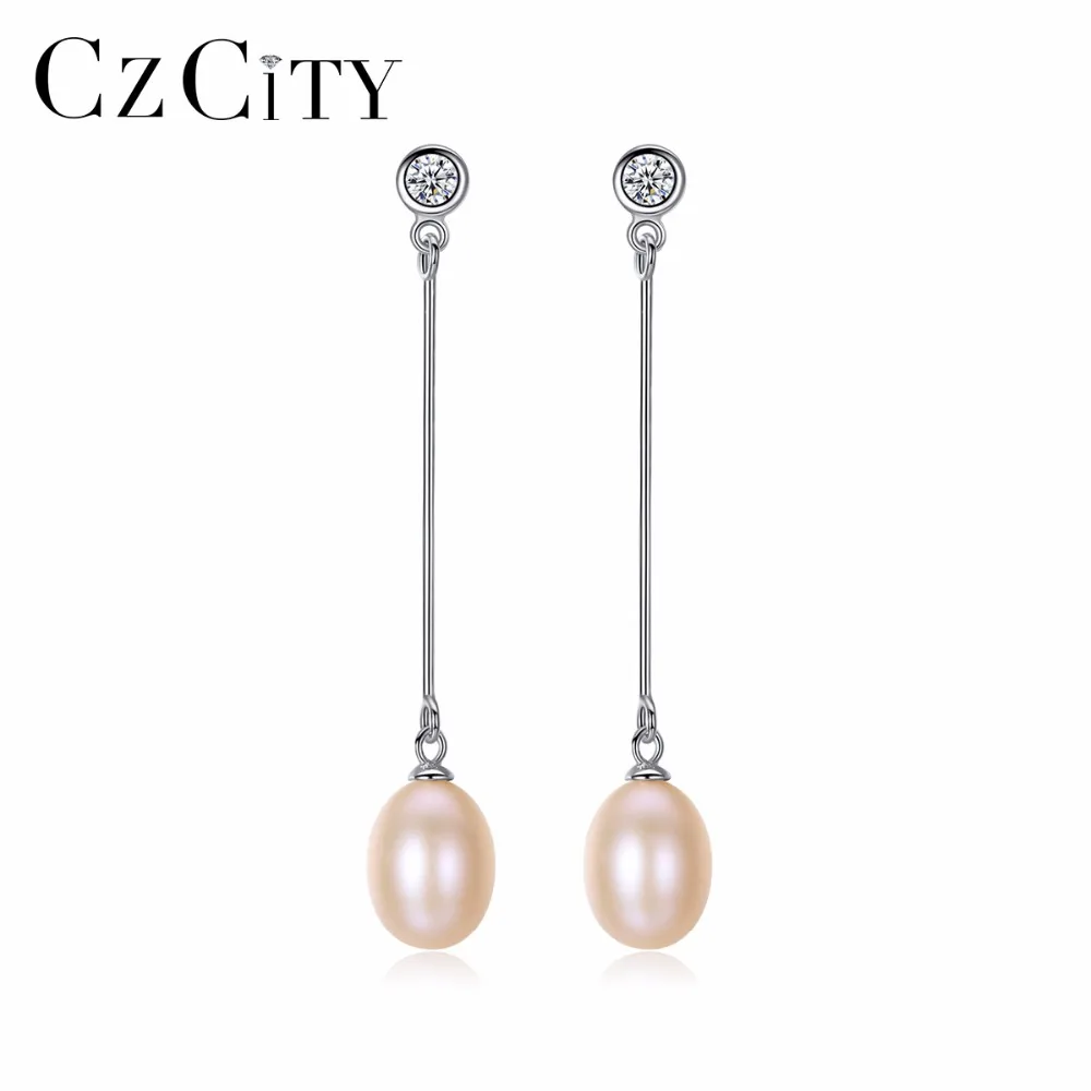 CZCITY длинные серьги естественный пресноводный белый розовый пурпурный жемчужный 925 пробы серебрянная шпилька для Для женщин Fine Jewelry