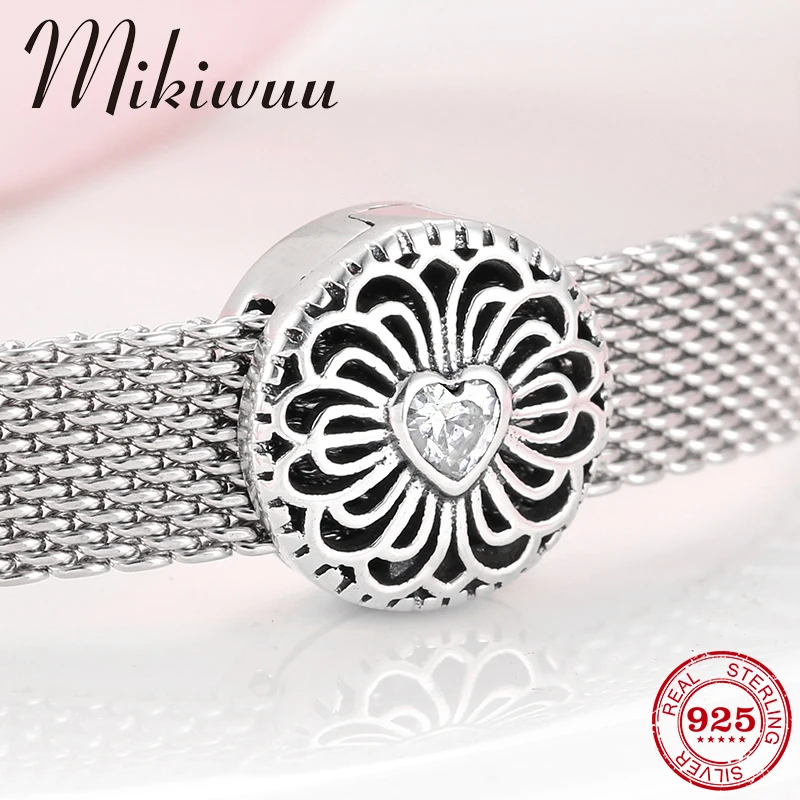 Серебряная круглой формы 925 пробы полое сердце циркониевый зажим для изготовления ювелирных изделий из бисера Подходит для оригинального о...