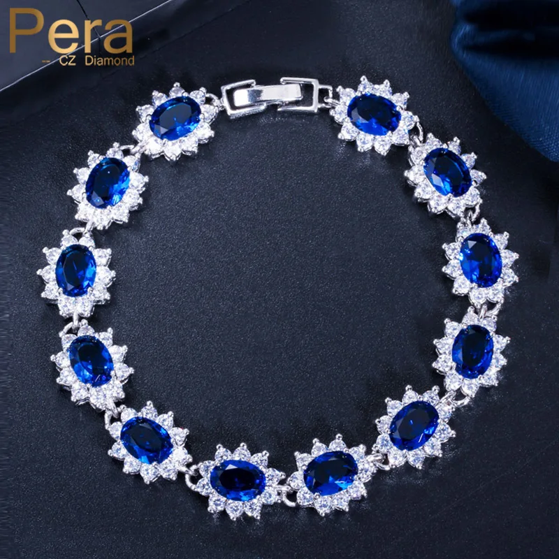 Pera, винтажные королевские ювелирные изделия из стерлингового серебра 925 пробы, овальный синий кубический цирконий, цепочка, браслеты для женщин, рождественский подарок B014