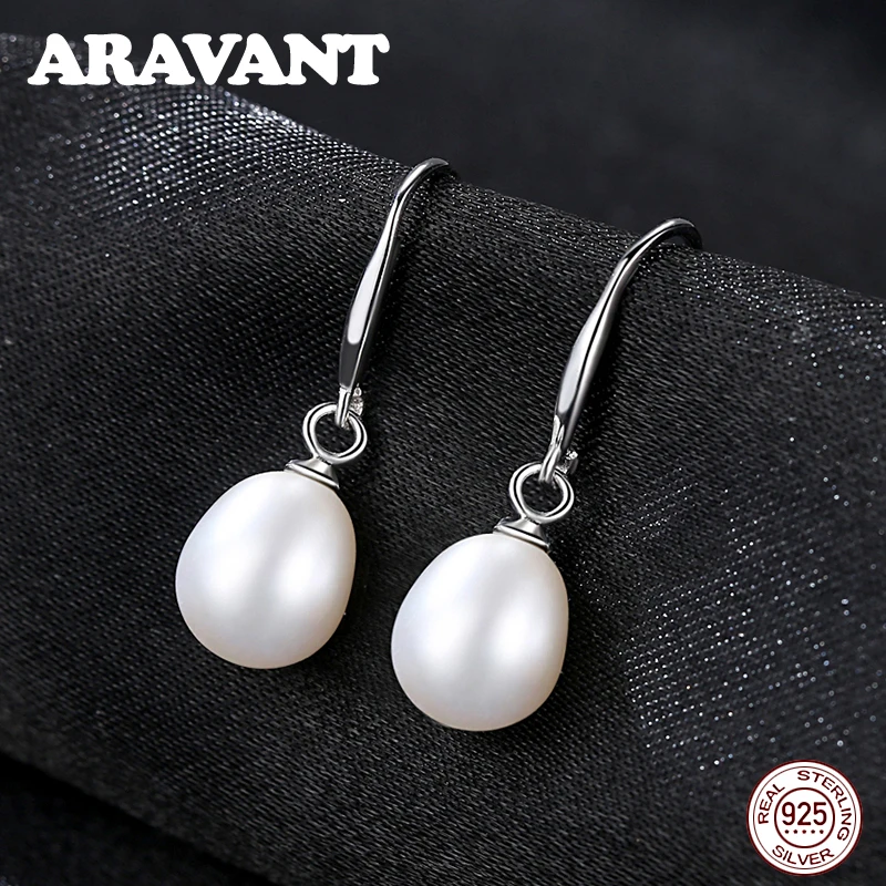 Серьги-капельки из натурального пресноводного жемчуга, 8 мм, 925 пробы, серебряные украшения для женщин, украшения на день рождения