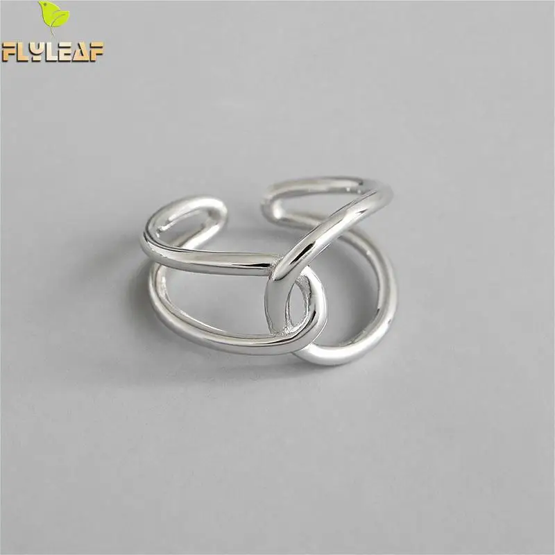 Flyleaf Ins минималистичный двойной слой линия крест настоящая кольца из стерлингового серебра 925 для женщин ювелирные украшения Открытое кольц...