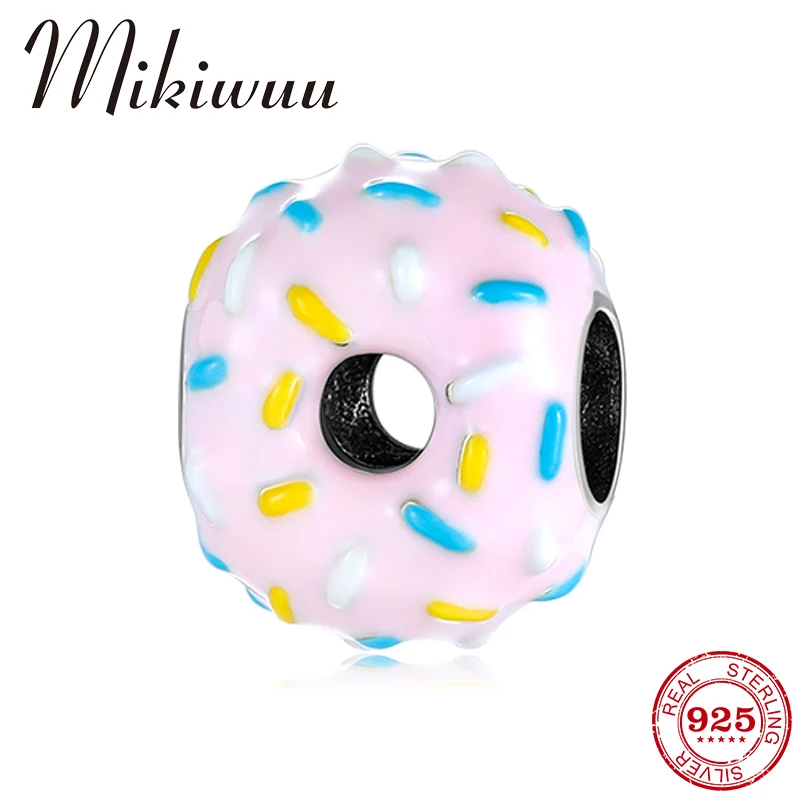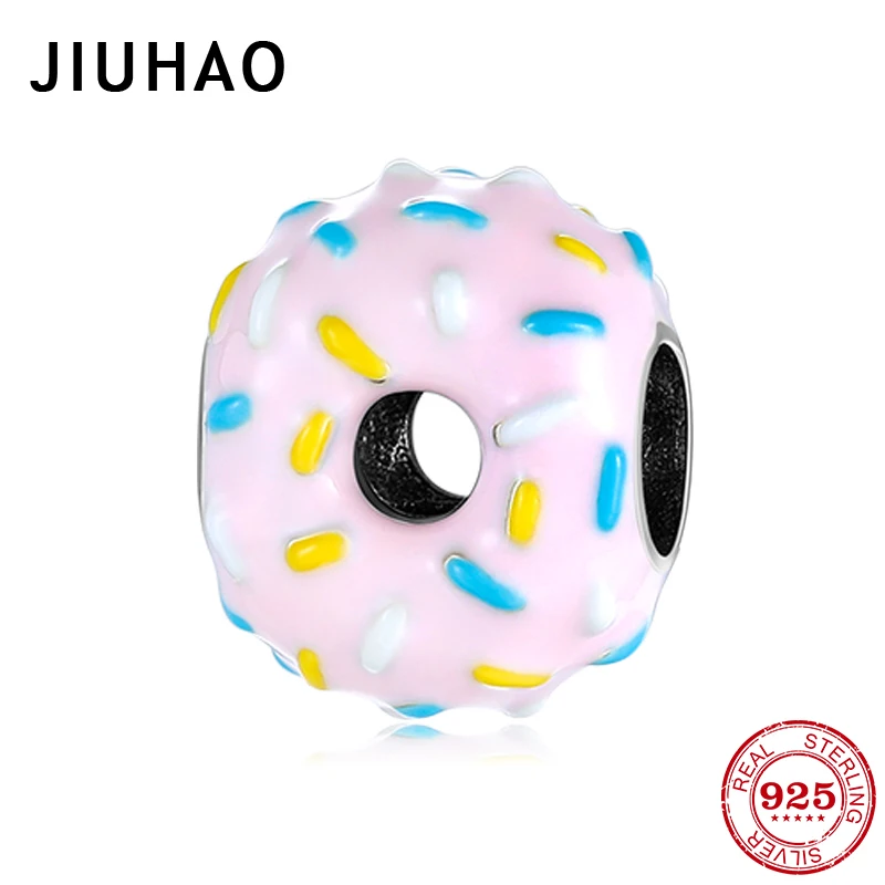Круглые очаровательные 925 пробы серебряные любимые розовые эмалированные бусины из пончика подходят для оригинальных ювелирных изделий с бриллиантами Pandora