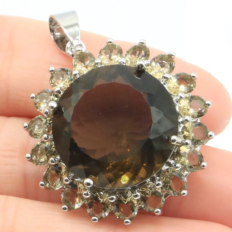Большой овальный драгоценный камень 25x20 мм Золотой Желтый Цитрин натуральный белый CZ вечерние серебряный кулон 34x21 мм